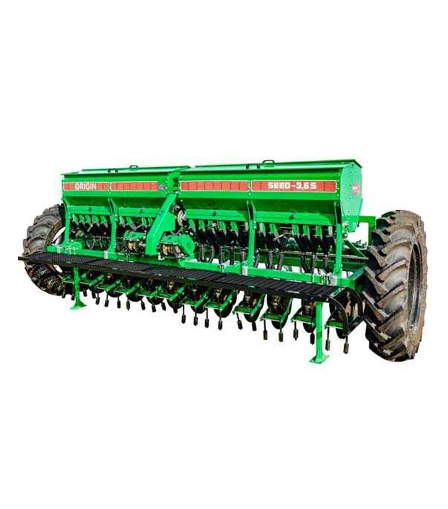 Сівалка зернотукова ORIGIN SEED 3,6-01S з пальцевим загортачем призначена для рядового висіву зернових, зернобобових, дрібнонасіннєвих культур і трав із одночасним внесенням мінеральних добрив та прикочуванням ґрунту. Обладнання дозволяє висівати пшеницю, жито, ячмінь, овес, горох, сою, чечевицю, нут, люпин, ріпак, гірчицю та інші культури. Завдяки збільшеному об'єму бункерів для насіння й добрив, сівалка підходить для середніх і великих господарств, забезпечуючи рівномірний висів і точне дотримання норми. Пальцевий загортач сприяє якісному закриттю насіння, а прикочувальні котки допомагають регулювати глибину загортання.