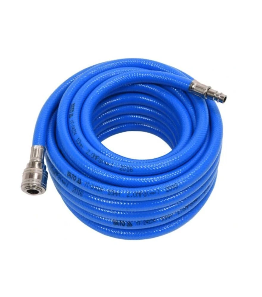 Модель YT‑24224 підходить для невеликих або середніх за обсягом робіт, де не потрібні довгі шланги або складні пневмосистеми. Завдяки пластиковому ПВХ‑ корпусу шланг залишається гнучким навіть при згортанні та зберіганні, що продовжує термін експлуатації. При цьому внутрішній діаметр 10 мм забезпечує прийнятний потік повітря для більшості ручних або компресорних пристроїв. Його легко під’єднати до компресора та інструменту без додаткових адаптерів (за умови наявності стандартного з’єднання).