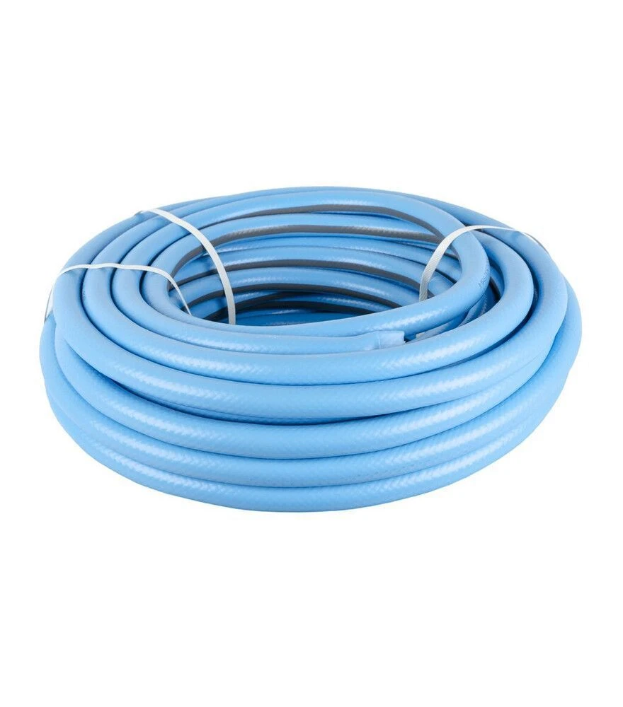 Шланг садовий "OASIS" 3/4" блакитнийСадовий шланг "OASIS" діаметром 3/4" підходить для поливу рослин у саду, на городі, клумбах і газонах, а також для побутових потреб. Тришарова конструкція з армованою ниткою забезпечує міцність і стійкість до навантажень. Шланг стійкий до ультрафіолету, не заростає водоростями та зберігає еластичність при температурах від -5°С до +60°С. Блакитний колір добре помітний під час роботи й робить шланг зручним у використанні.