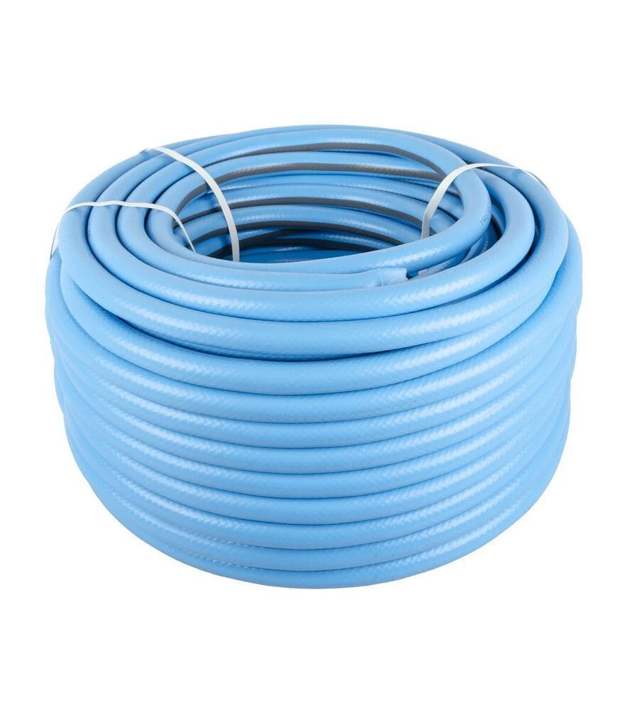 Шланг садовий "OASIS" 3/4" блакитнийСадовий шланг "OASIS" діаметром 3/4" призначений для поливу великих площ: садів, городів, теплиць, газонів і клумб. Тришарова конструкція з армованою ниткою забезпечує високу міцність і стійкість до навантажень. Матеріал не боїться ультрафіолету, не заростає водоростями та зберігає еластичність у температурному діапазоні від -5°С до +60°С. Блакитний колір добре помітний на ділянці, що робить використання більш зручним та безпечним.