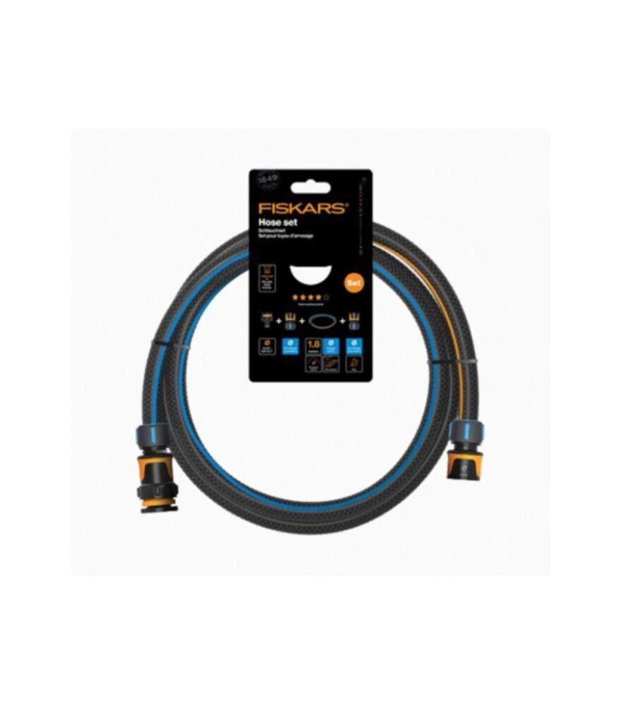 Набір сполучний зі шлангом Fiskars Q4 (1057621) - це практичне рішення для під’єднання поливних систем, яке забезпечує надійність, простоту монтажу та сумісність із більшістю побутових систем поливу.