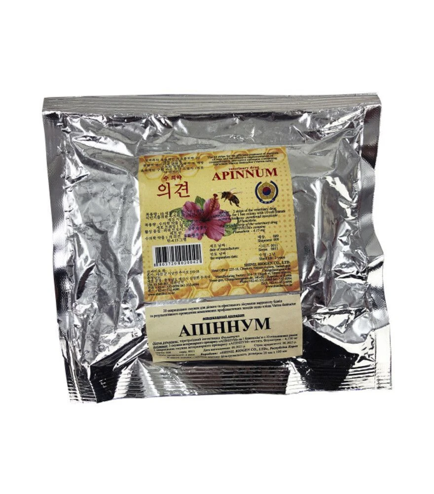 Смужки «Апіннум» (PV0022KO) - ветеринарний препарат у форматі картонних смужок для лікування та профілактики вароатозу бджіл (Varroa destructor). Одна смужка містить флуметрин 4,15 мг. Смужки виготовлені з фільтрувального картону та упаковані у фольгований полімерний пакет. Препарат застосовують упродовж сезону: навесні після першого масового обльоту, влітку та восени - до початку основного медозбору або після його завершення. Не містить антибіотиків. Виробництво - Південна Корея.