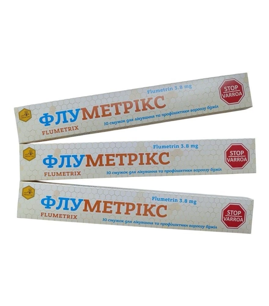 Смужки Флуметрикс застосовують для лікування, профілактики та діагностики вароатозу у бджолосім’ях. Діюча речовина - флуметрин (піретроїд), який працює контактно та має пролонговану акарицидну дію проти кліща Varroa. Смужки виготовлені з дерев’яного шпону та встановлюються вертикально в міжрамковому просторі в центральній зоні гнізда. Дозування підбирають за силою сім’ї та типом вулика, а тривалість перебування смужок у гнізді регламентована.