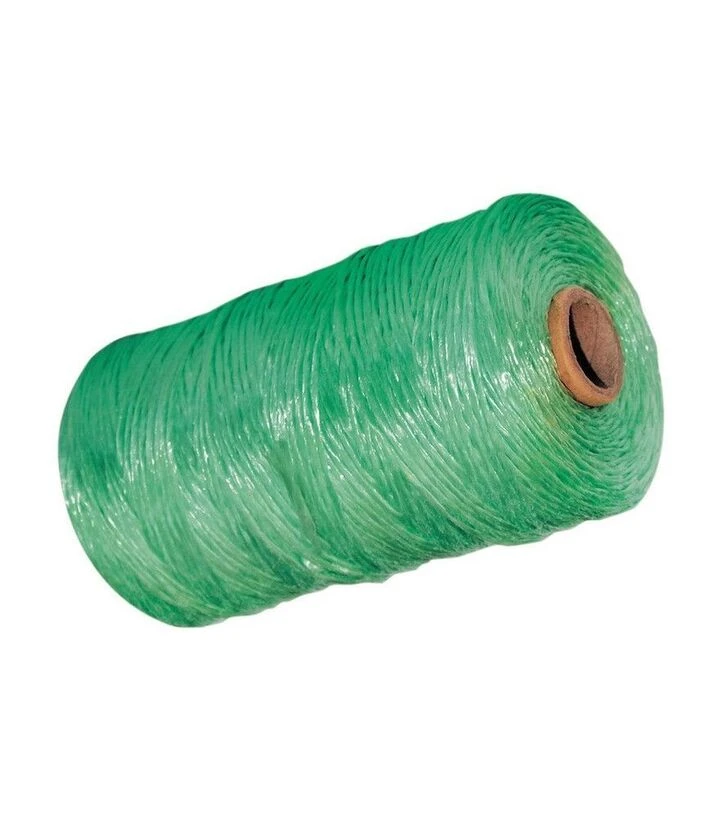 Шпагат виготовлений із поліпропілену, який добре тримає вузли, не вбирає вологу, не розтягується при навантаженні та зберігає свою міцність під дією сонця чи дощу. УФ-добавка підсилює стійкість нитки до руйнування, що особливо важливо під час тривалого використання на відкритому повітрі.