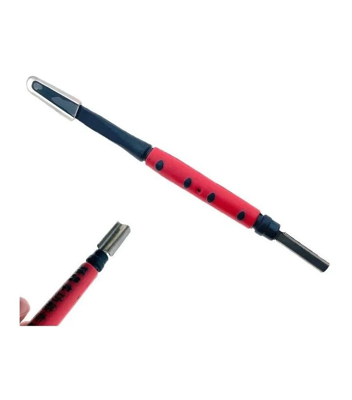Одна сторона шпателя використовується для акуратного забору маточного молочка з маточників без пошкодження личинок і мисочок. Інша сторона оснащена металевим елементом, який допомагає швидко та точно очищати мисочки після збору. Така схема роботи дозволяє виконувати всі дії послідовно одним інструментом.