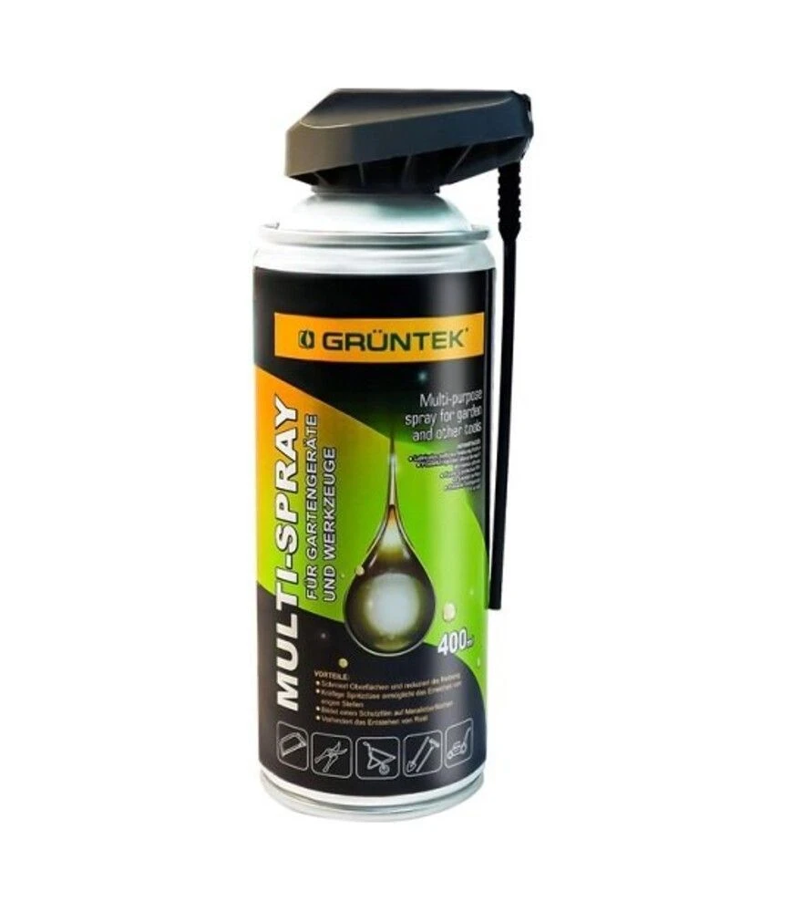 Спрей для змащування універсальний GRUNTEK, 400 мл (297100400) Універсальний спрей GRUNTEK 400 мл - мастильний і захисний засіб для металевих, рухомих та кріпильних елементів: болтів, гайок, шарнірів, петлей, інструментів, ручок, металоконструкцій. Об’єм 400 мл робить його придатним для оброблення великої кількості деталей або масових механізмів - в господарстві, на фермі, в майстерні. Аерозоль рівномірно розподіляє мастило навіть у вузьких зазорах та важкодоступних місцях, що спрощує обслуговування інструментів і техніки. Спрей допомагає зменшити тертя, полегшує рухливість механізмів, запобігає іржі, захищає від вологи, пилу та бруду.