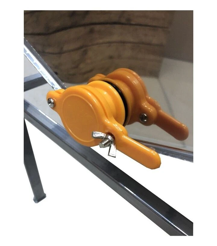 Стіл для розпечатування стільників 1,5 м, пластиковий кран (1631P) призначений для організації робочого місця під час розпечатування рамок перед відкачуванням меду. Завдяки довжині 1,5 м він дає більше простору для роботи партіями, а також для тимчасового підвішування підготовлених рамок у ванні. Конструкція складається з ванни з ухилом до зливу, глибокого кошика для забрусу та упора для рамки. Забрус збирається в кошику, а мед стікає по днищу ванни в бік крана. Телескопічні ніжки спрощують транспортування, зберігання та підбір висоти під робоче місце.
