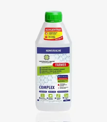 Complex — це висококонцентроване біодобриво, що містить гумінові та фульвові кислоти, бурштинову кислоту, L-амінокислоти та важливі мікроелементи. Продукт призначений для підживлення та відновлення рослин, підтримуючи їх здоровий ріст і розвиток.