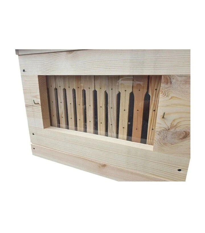 Стінка з оглядовим вікном на 12-ти рамковий вулик дає можливість швидко оцінювати стан бджолосім’ї, запаси та активність без відкривання даху. Встановлення замість глухої стінки зменшує частоту втручань у гніздо та полегшує контроль протягом сезону.