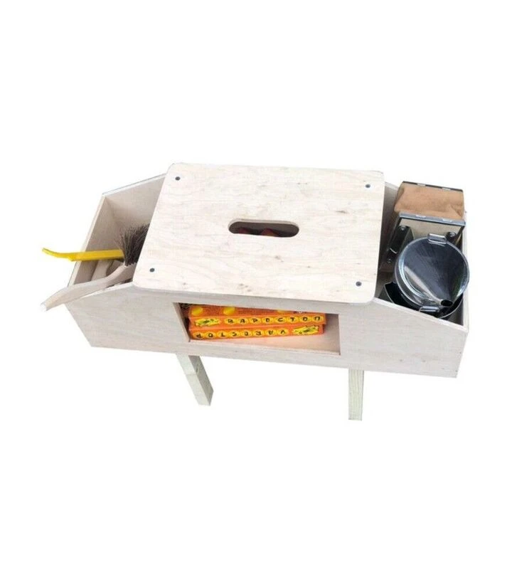 Табурет пасічника, робочий ящик є практичним рішенням для організації роботи на пасіці, що поєднує комфорт і зручне зберігання пасічного інвентарю.
