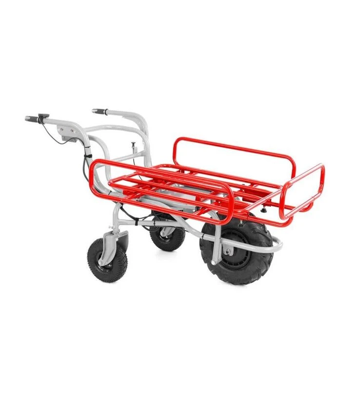 HECHT 2623 має три колеса, що дають додаткову стабільність під час руху, особливо при перевезенні об’ємних вантажів. Це робить пристрій зручним у роботі на нерівних ділянках або при переміщенні вантажів на дорогах із грунтовим покриттям. Електричний привод з акумулятором дозволяє рухатися без фізичного навантаження на користувача, що особливо важливо при тривалих або інтенсивних задачах. Конструкція зроблена так, щоб забезпечити баланс між маневреністю та вантажним потенціалом.