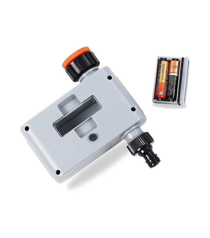 Таймер має компактні розміри, пластиковий корпус і стандартне різьблення для підключення до крана або шланга. Система живлення - від двох батарейок AA, що дає автономність без проводів. Програмне меню просте і інтуїтивне. Пристрій підходить для стандартного тиску води, ідеальний для щоденного поливу городу, клумб або контейнерів. Він спрощує догляд за ділянкою, зменшує участь людини і забезпечує регулярну подачу води.