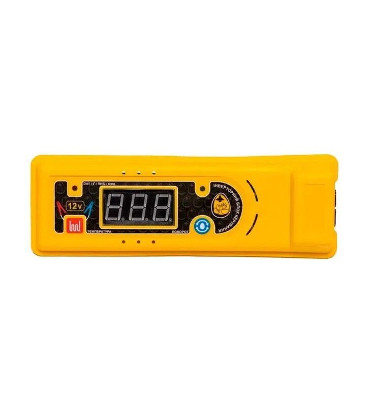 Терморегулятор отримує дані від датчиків температури та вологості, аналізує їх і автоматично вмикає або вимикає нагрівальні елементи, вентилятор та механізм перевороту яєць. Користувач задає потрібні параметри, після чого система самостійно підтримує заданий режим. Вбудований таймер керує інтервалами перевороту, а цифровий дисплей відображає всі ключові показники в реальному часі.