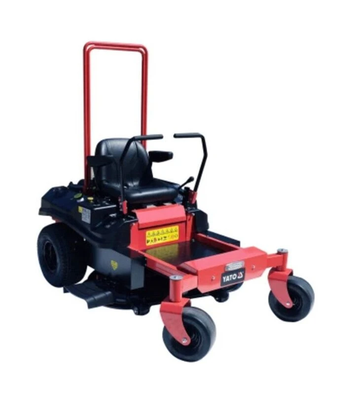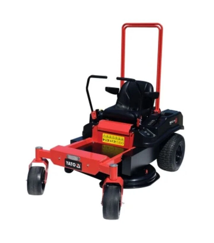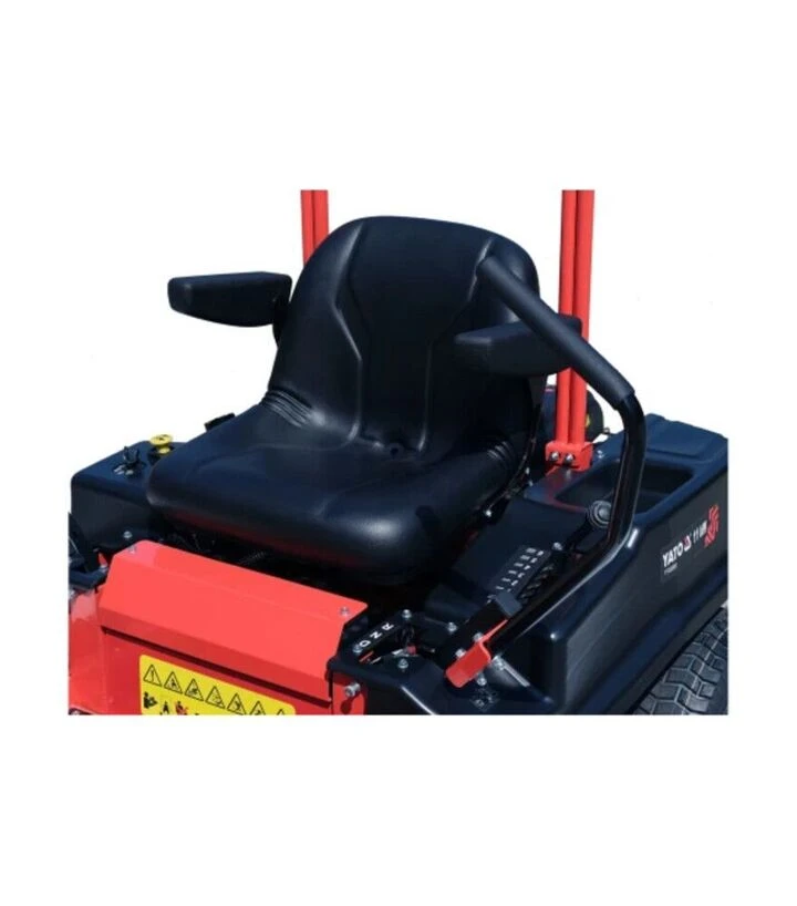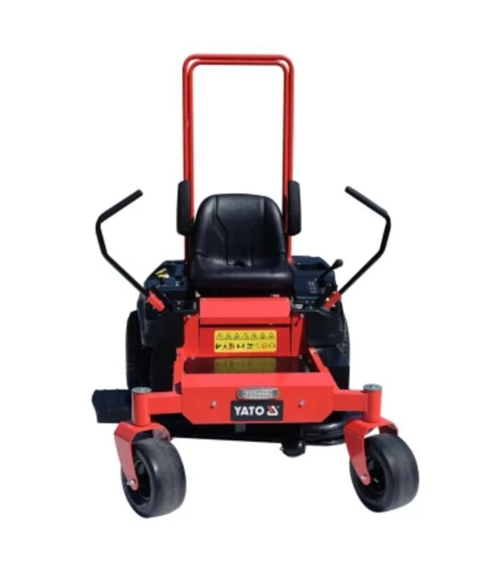 YATO YT‑85553 має гідростатичну трансмісію, що робить управління простим і плавним; один ніж, що забезпечує чистий зріз; бічний викид трави для рівномірного розподілу.
