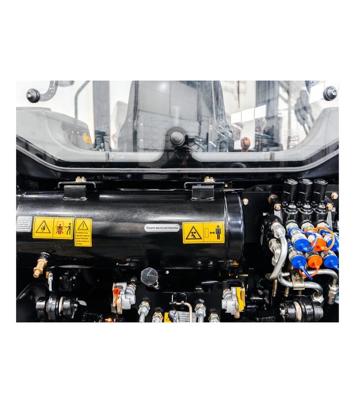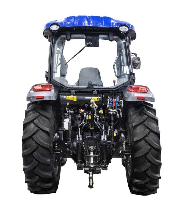 Габарити 4542×2150×2900 мм забезпечують стабільність під час роботи на полі та при транспортуванні. Трактор комплектується шинами 12.4-24/16.9-34, що підвищують зчеплення на різних типах ґрунтів. Рівна підлога та зручне розташування органів керування зменшують втому оператора. Посилена гідросистема з двома гідроциліндрами дозволяє працювати з важким обладнанням, а три пари гідровиходів забезпечують підключення різного приладдя. В комплект входять передні грузи та ЗІП.