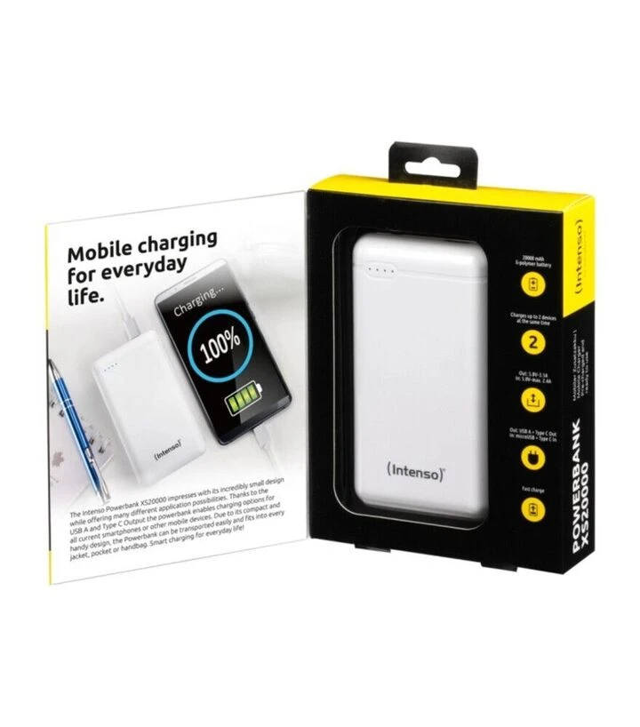 Універсальна мобільна батарея Intenso XS20000 може використовуватися як щоденне резервне джерело живлення для смартфона, планшета чи інших мобільних пристроїв. Поєднання ємності, компактності, двох інтерфейсів заряджання та системи захисту робить цю модель придатною для різних сценаріїв використання, де важливо підтримати роботу техніки без постійного доступу до електромережі.