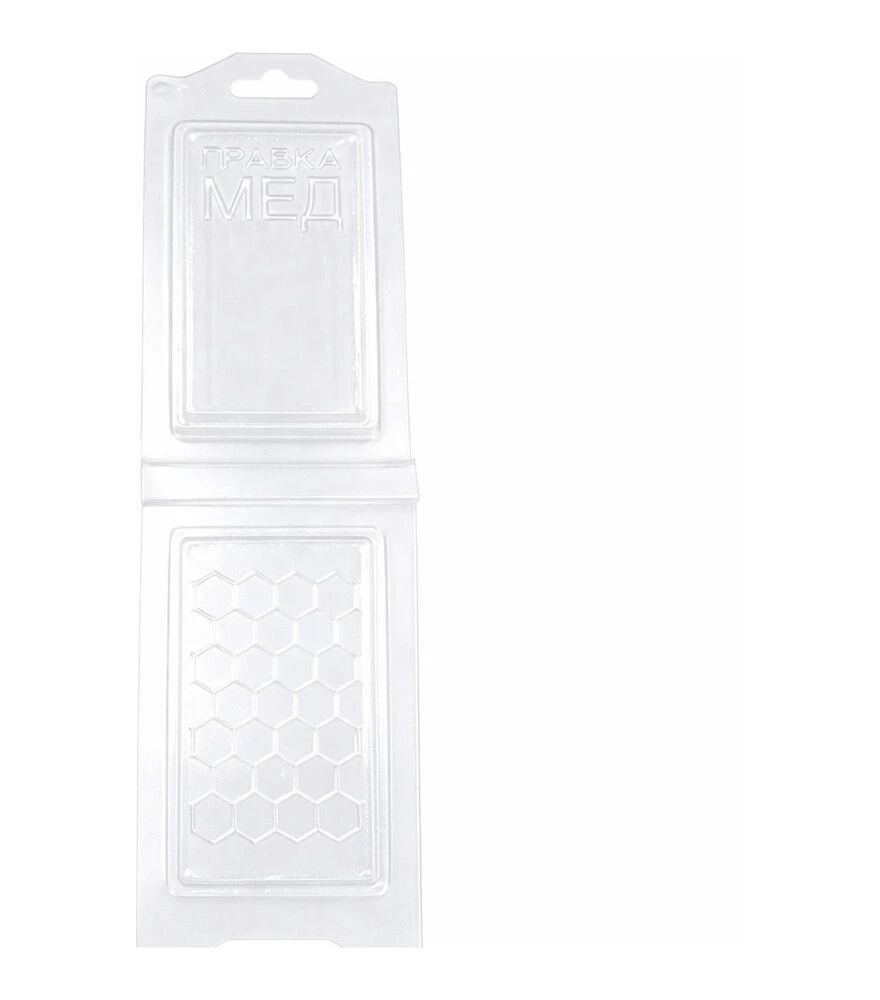 Прозора упаковка з харчового ПЕТ призначена для зберігання, продажу та транспортування стільникового меду у міні-рамці. Складається з двох контейнерів, які з’єднуються між собою та формують закритий корпус навколо рамки. Матеріал товщиною 0,5 мм тримає форму та дозволяє покупцю повністю бачити продукт без відкривання. З одного боку висічений малюнок сот, з іншого - напис «Стільниковий мед» і прозоре вікно 57×65 мм для огляду або розміщення етикетки виробника.