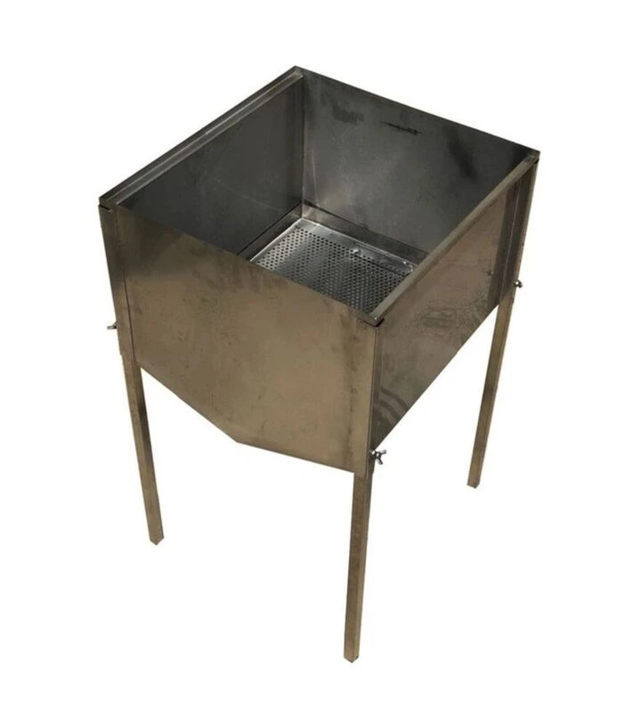Верстат для розпечатування стільників з бункером, механічний (207) підходить для механічної двосторонньої розпечатки рамок із організованим збором забрусу. Використовується для прискорення підготовки рамок до відкачування та підтримки порядку на робочому місці.