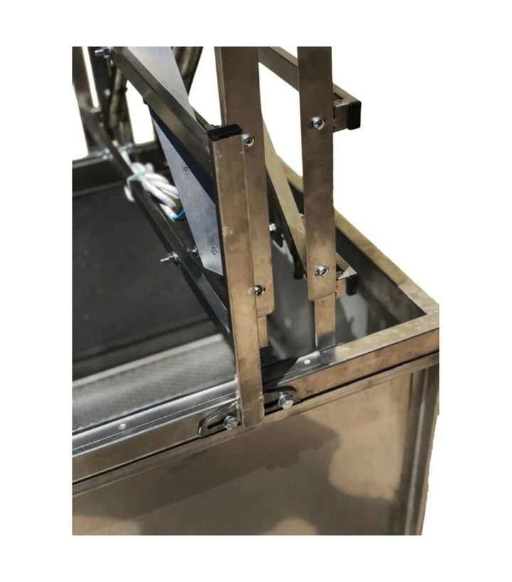 Верстат призначений для механічної двосторонньої розпечатки рамок із одночасним збором забрусу в бункер. Рамка подається вертикально між напрямними, а клинові електричні ножі знімають забрус з обох боків за один прохід. Наявність бункера-накопичувача допомагає організувати робоче місце: зрізи воску не розлітаються по приміщенню, а збираються в одній зоні. Конструкція підходить для регулярної роботи під час активного медозбору.