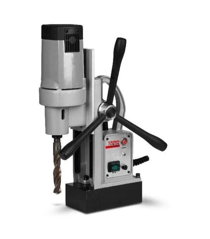 Верстат свердлильний магнітний CROWN CT32029, 1400 Вт (CT32029)Магнітний свердлильний верстат CROWN CT32029 призначений для точного свердління, розточування та розгортання отворів у металі. Потужність двигуна 1400 Вт дозволяє працювати з матеріалами різної товщини, а максимальний діаметр свердління в сталі становить до 32 мм. Верстат має потовщену магнітну основу з утримуючою силою 13 000 Н, що забезпечує стійке положення на металевій поверхні під час роботи. Шпиндель із ходом 180 мм та конусом МТ2 забезпечує високу точність свердління. Частота обертання шпинделя - 600 об/хв. У комплекті - алмазна коронка, патрон, ручка, щітки, ключ, адаптер і кейс. Верстат живиться від стандартної мережі 220–230 В, частота - 50 Гц.Бренд CROWN спеціалізується на виробництві електроінструментів і верстатів для професійного використання. Його продукція орієнтована на точність, витривалість і зручність у роботі.