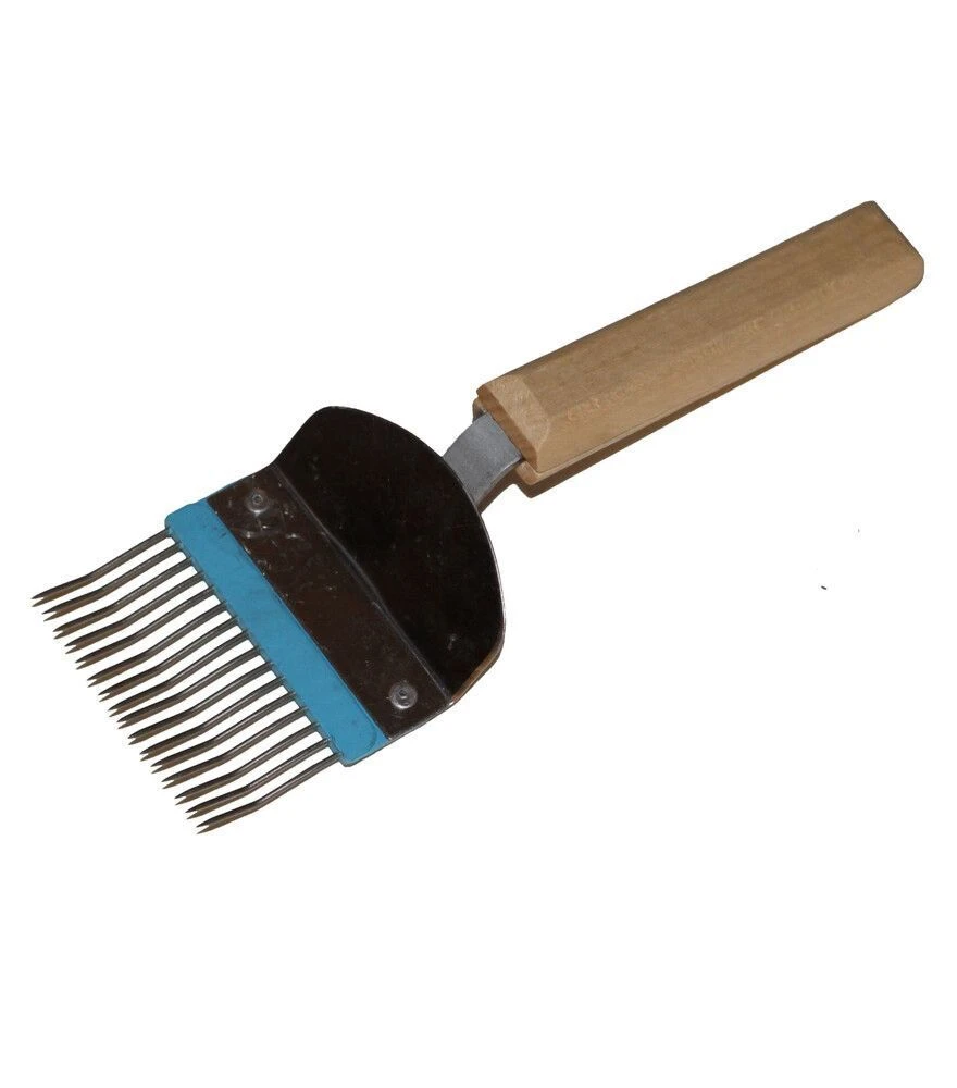 Виделка пасічника призначена для розпечатування бджолиних стільників перед відкачуванням меду. Інструмент використовується для зняття забрусу з рамок і підготовки їх до медогонки. Робоча частина виготовлена з нержавіючої сталі, що забезпечує стійкість до вологи та простоту в догляді. Гнуті голки полегшують роботу зі стільниками різної глибини та дозволяють акуратно розкривати комірки без пошкодження рамки.