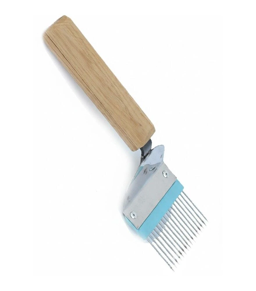 Виделка пасічника призначена для розпечатування медових стільників перед відкачуванням меду. Інструмент використовується для акуратного зняття забрусу з поверхні рамок та підготовки їх до медогонки. Робоча частина виготовлена з нержавіючої сталі, що забезпечує стійкість до вологи, меду та воску. Прямі голки дозволяють контролювати глибину розпечатування та працювати рівномірно по всій площі стільника без зайвих пошкоджень.