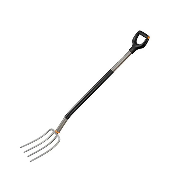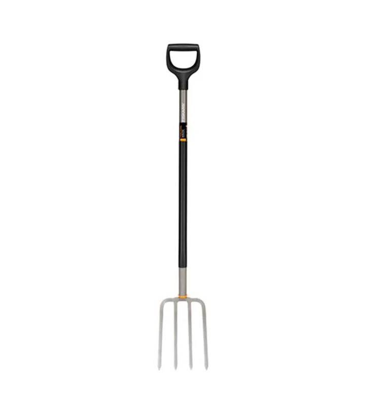 Вила мають сталеву робочу частину з борованої сталі, яка забезпечує довговічність і ефективну роботу навіть у твердому ґрунті. Вигнута форма рукояті та продуманий кут нахилу сприяють природному положенню тіла, а покриття SoftGrip™ забезпечує комфортний хват у різних погодних умовах. D-подібна рукоятка робить інструмент зручним для користувачів з різним розміром руки та підвищує контроль при роботі.