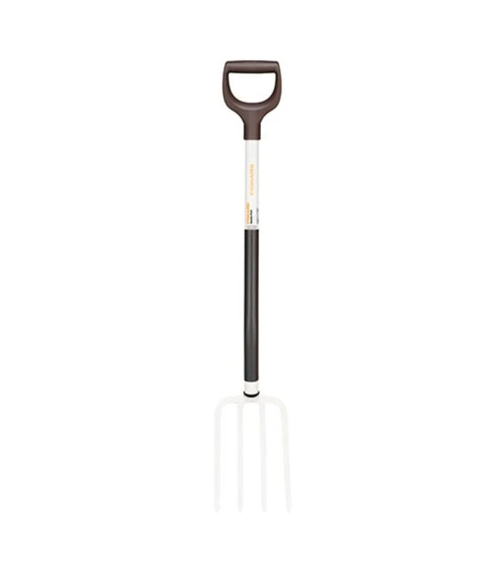 Вила мають компактну сталеву раму з робочою частиною, яка підходить для обробки невеликих ділянок та легких садових матеріалів. Покриття SoftGrip робить рукоятку комфортною в будь-який сезон, а D-подібна форма покращує контроль інструмента. Завдяки невеликій вазі та зручній геометрії інструмент легко використовувати навіть у вузьких садових зонах.