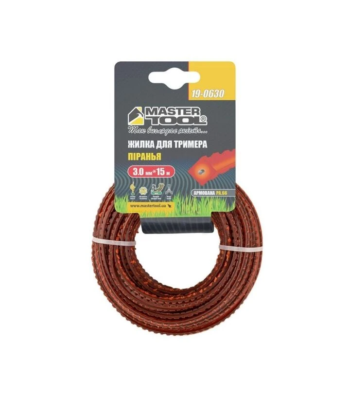 Відгуки Волосінь для тримера MASTERTOOL ПІРАНЬЯ, квадрат зубчатий, армована, 3 мм, 15 м (19-0630)