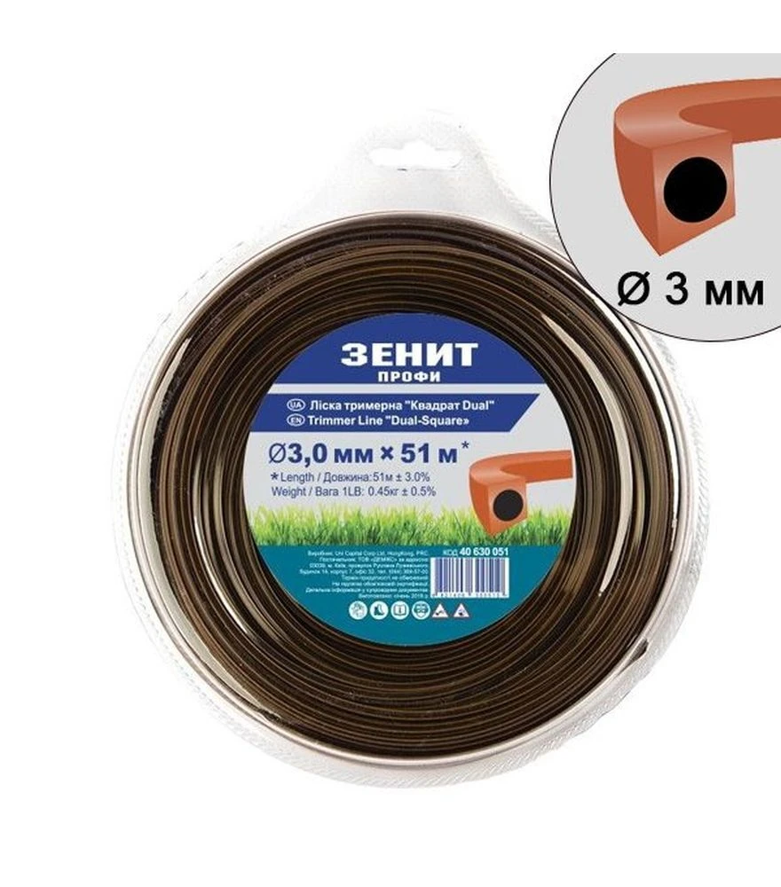 Волосінь для тримера Зеніт квадрат 3,0 мм, 51 м Зеніт (40630051)