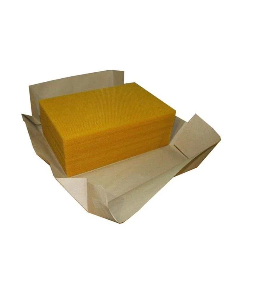 Вощина Дадан 300 ммВощина формату Дадан 300 мм призначена для навощування гніздових рамок у вуликах відповідної системи. Тонкі воскові листи мають чітко сформовані донища та початки комірок, що допомагає бджолам швидко приймати вощину й відбудовувати рівні стільники. Після встановлення рамок у вулик бджоли добудовують комірки власним воском, формуючи правильні ряди з обох сторін рамки, що спрощує подальшу роботу з гніздом.