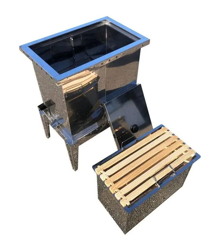 Парова воскотопка призначена для перетопки воскової сировини з рамок у господарських умовах пасіки. Її використовують після сезону або під час планової переробки суші для отримання очищеного воску. Конструкція розрахована на завантаження рамок без попереднього подрібнення, що зменшує обсяг підготовчих робіт. Воскотопка виготовлена з харчової нержавіючої сталі, стійкої до вологи та високих температур, що забезпечує стабільну роботу та збереження властивостей воску.