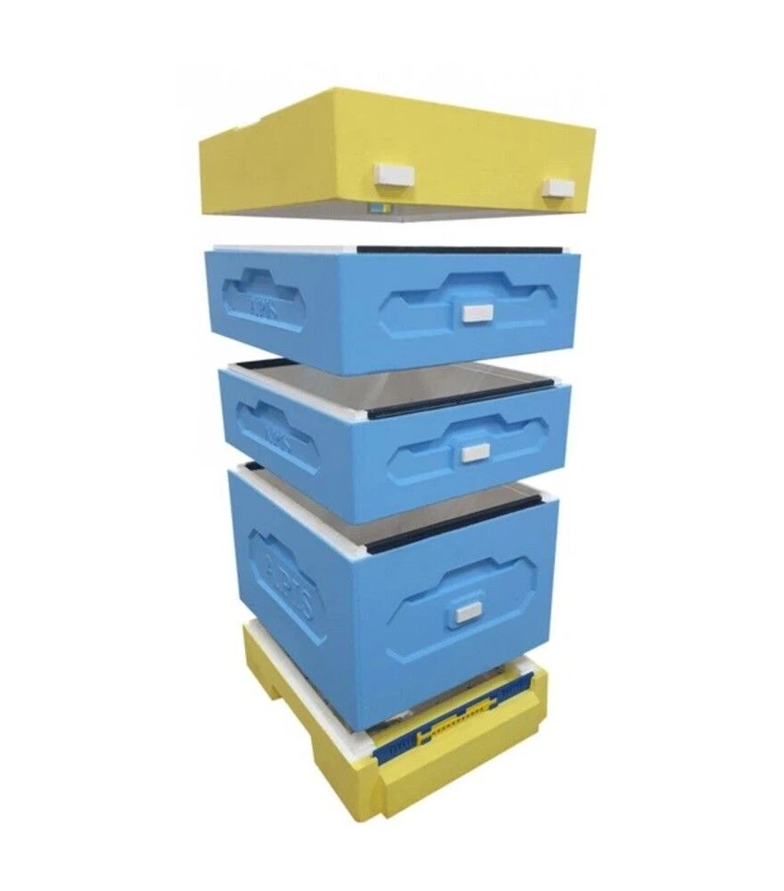 Стіни 35 мм із ППС допомагають утримувати стабільніші умови в гнізді. Сітчасте дно підтримує вентиляцію та спрощує очищення. Два магазини 145 мм дають запас об’єму під медозбір, щоб відбирати мед переважно з верхніх ярусів.