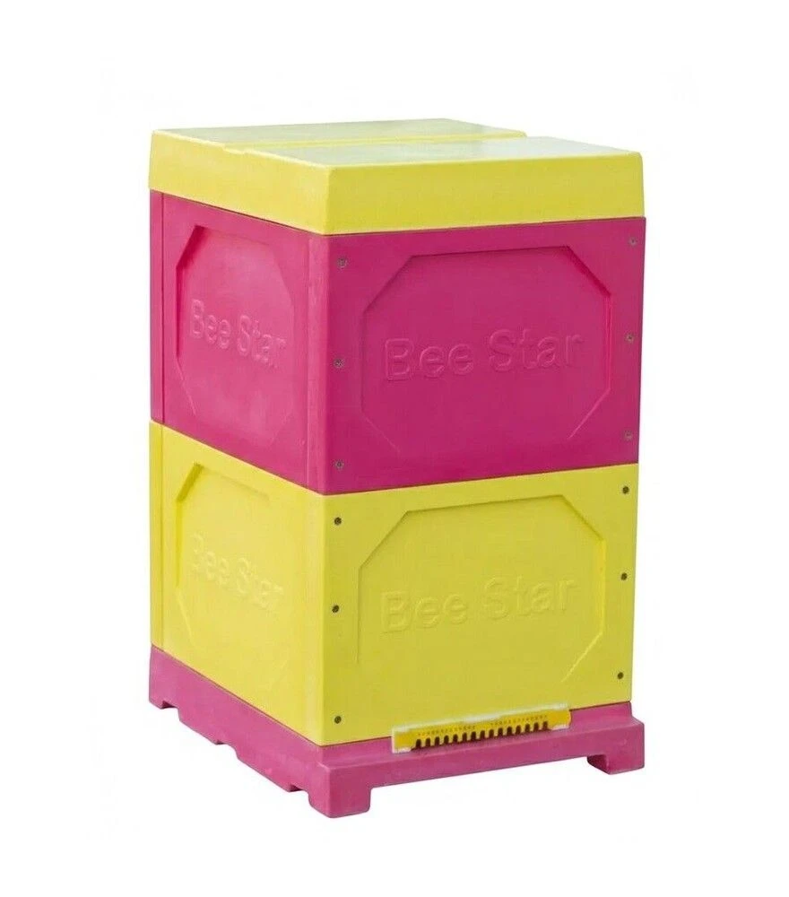 Вулик ППУ BeeStar під рамку Дадан 300 мм, 2 корпуси, на 10 рамок (BS300-2)ППУ-вулік BeeStar у корпусній системі: 2 гніздові корпуси під рамку Дадан 300 мм, по 10 рамок у корпусі. Деталі виготовлені литтям у прес-формі та сумісні з елементами SOTA, Lyson, APIX, APIS і BeeHouse. Корпуси постачаються розібраними (по 4 частини) і стягуються саморізами близько 100 мм (не входять). Доступні кольори: синій, жовтий, помаранчевий, зелений, рожевий. Товщина стінки 35 мм, щільність 120 кг/м³, вага 7,7 кг.