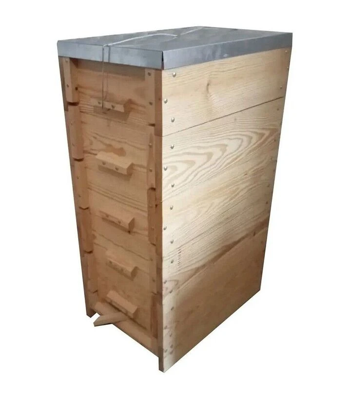 Вулик рогатий під рамку 145 мм (В0001) - комплект із 5 корпусів на 9 рамок, сітчастого дна з заглушкою та утепленого даху з фіксацією дротом для корпусної роботи та сезонних перевезень.