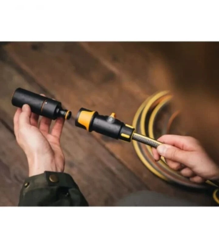 Конектор для шланга Fiskars з механізмом ВКЛ/ВИМК призначений для під’єднання поливальних інструментів до шлангів діаметром 9 мм. Оснащений клапаном On/Off, він дозволяє легко керувати подачею води безпосередньо на шлангу - це зручно під час зміни насадок або перенесення поливальної системи між різними ділянками. Прогумований корпус забезпечує надійне зчеплення та зручність у використанні, а швидкознімне з’єднання дає змогу швидко встановлювати й від’єднувати пістолети, штанги чи дощувачі.