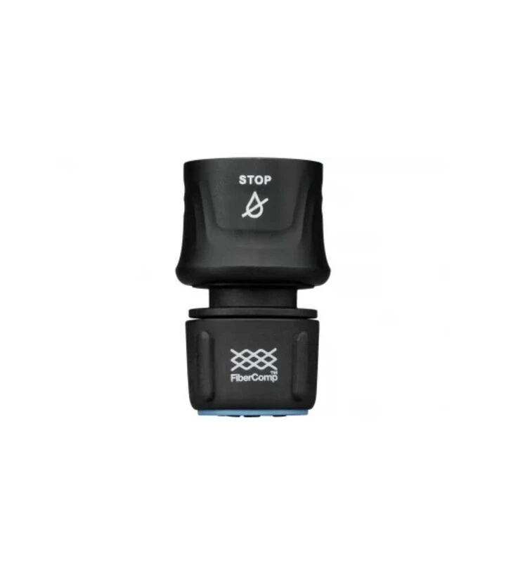 Конектор для шланга Fiskars FiberComp STOP допомагає швидко підключати поливальні інструменти до шланга та змінювати їх без перекриття води. Завдяки механізму аквастоп та міцному матеріалу він підходить для використання у системах поливу саду, городу або теплиці.