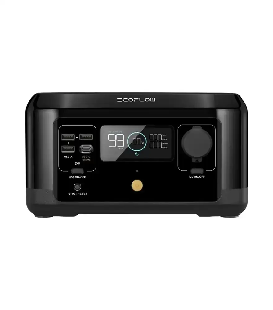 Зарядна станція має Li-ion NMC акумулятор, ємністю 210 Вт/год і здатна живити до 7 пристроїв одночасно. Серед можливостей станції — сучасний бездротовий зарядний пристрій для телефону, одна розетка змінного струму, чотири USB-виходи та порт для автомобільної зарядки. EcoFlow River mini має потужність 300 Вт, проте завдяки спеціальній розробці X-Boost, інвертор може видавати струм до 600 Вт.