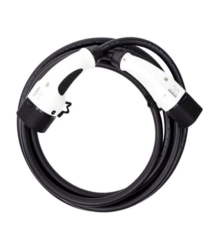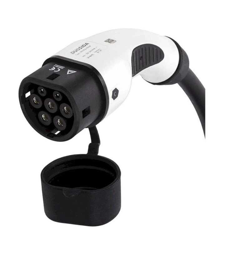 Duosida Type 2 – Type 2 (EV200153) працює як пасивний з’єднувальний елемент між зарядною станцією та електромобілем, не потребує налаштування й підтримує стандартний протокол обміну даними через контакти роз’єму Type 2. Поєднання чорного та білого кольорів полегшує орієнтацію при підключенні, а гнучкий кабель зручно змотувати та зберігати в багажнику.