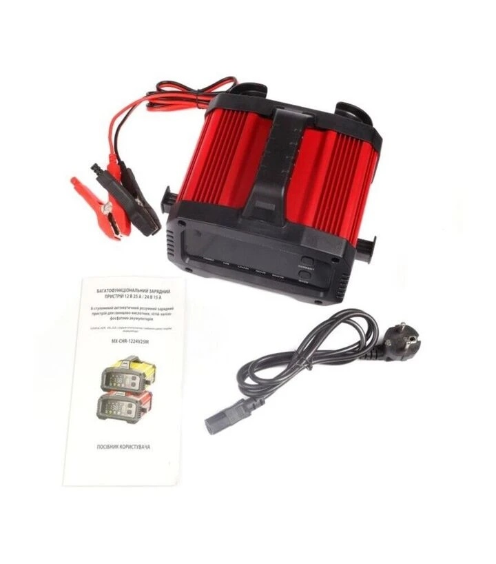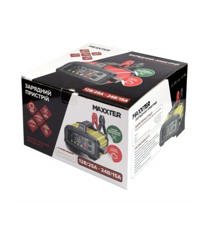 Maxxter MX-CHR-1224V25M забезпечує стабільне та безпечне заряджання потужних АКБ, поєднуючи універсальність, інформативність дисплея та ефективну роботу для широкого спектра транспортних засобів.