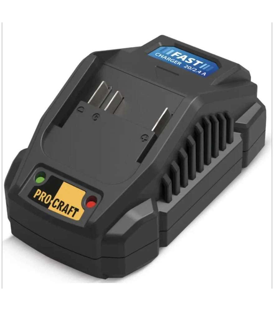 - Сумісність із акумуляторами 20 В - підтримує заряджання батарей ProCraft та інших 20‑вольтових акумуляторів з подібними характеристиками.
