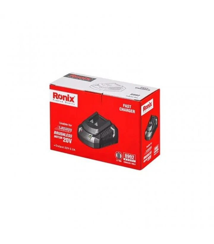Ronix 8992 - це зарядний пристрій із вихідним струмом 2,2 А, який підходить для всіх акумуляторів бренду на 20 В. Його конструкція передбачає легке підключення, автоматичне завершення зарядки та вбудований захист від базових електричних ризиків. Завдяки компактним розмірам його зручно використовувати як у стаціонарних умовах, так і на виїзних роботах. Практичне рішення для регулярного поповнення заряду.